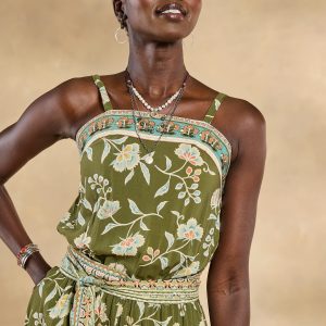 Invite the great outdoors into your wardrobe with this comfy pull-on romper. blooming with lush florals and accented with border details. Adjustable straps and elastic at the waist and back bodice for the most comfortable fit. Side seam pockets. Viscose. Machine wash. Imported. Exclusive. Sizes XS (0?C2). S (4?C6). M (8?C10). L (12?C14). XL (16?C18). XXL (20?C22). Approx. 26l.
