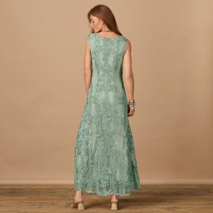 Hearts skip a beat over this romantic rayon dress with jersey body and mesh overlay. Woven. ribbon appliqu?? adds an unrivaled elegance. Classic fit with full skirt. Nylon/rayon/spandex. Dry Clean. but for best results Sundance recommends garment to be hand washed. Imported. Exclusive. Sizes XS (0-2). S (4-6). M (8-10). L (12-14). XL (16-18). XXL (20-22). Approx. 42l.