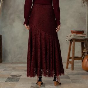 Can a garment be a garden party? Meet our Champs de Fleur Skirt??luxe lace fabric with an all-over floral pattern. an asymmetrical hemline and flirty ruffles. Elastic waistband. Polyester/rayon. Machine wash. Imported. Exclusive. Sizes XS (0?C2). S (4?C6). M (8?C10). L (12?C14). XL (16?C18). XXL (20?C22).