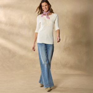 Jersey soutache detailing at the placket adds a touch of texture to this classic fit tonal henley. Elbow length sleeves. Cotton. Machine wash. Imported. Exclusive. Sizes XS (0–2). S (4–6). M (8–10). L (12–14). XL (16–18). XXL (20–22). Approx. 25l.